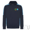 Contrast upper chest and underarm panels. Quarter zip. Side panels. Reverse nylon zips centre front and side pockets. 1×1 ribbed cuff sleeve. Semi-automatic zip pull and slider.